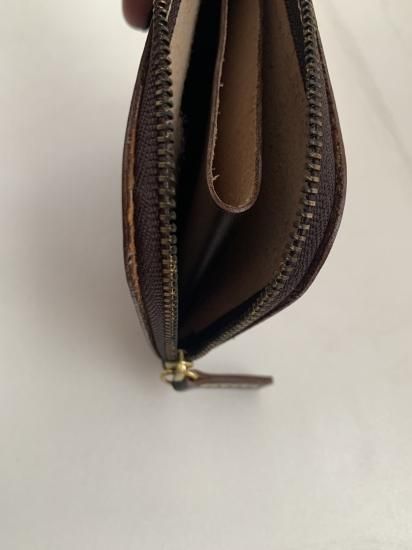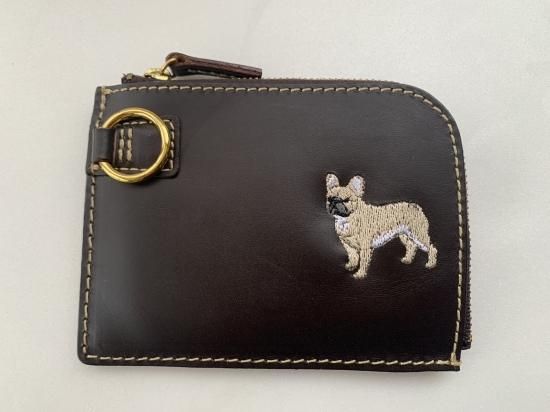 刺繍を施したヌメ革で作った二つ折り財布です。