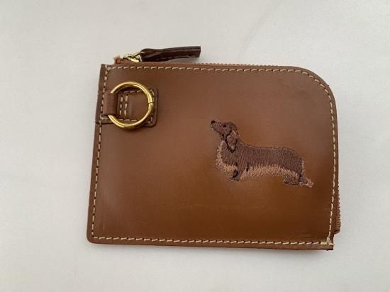 刺繍を施したヌメ革で作った二つ折り財布です。