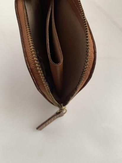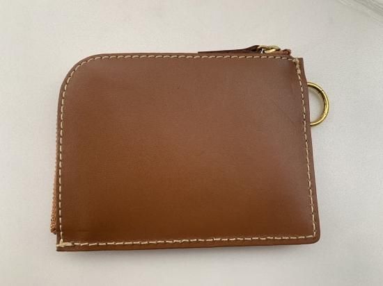 刺繍を施したヌメ革で作った二つ折り財布です。